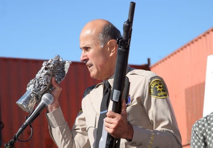 Read More →Los Angeles law enforcement officials including Los Angeles County Sheriff Leroy Baca and LAPD Chief Charlie Beck attended an event marking the crushing of 3,469 pounds of weapons mostly used in crimes. Pieces of the weapons will be incorporated into a "peace angel" sculpture at the Boyle Heights Tech Center. Photos courtesy of the Los Angeles Sheriff's Department.