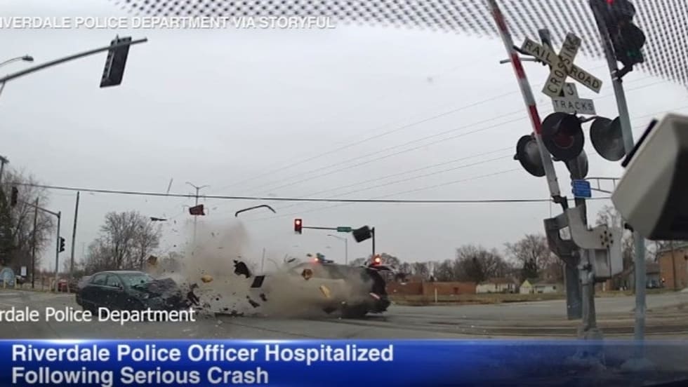 Police released dashcam video that shows the moment of impact. Investigators said the officer was driving westbound when a black Impala driving at a high rate of speed hit the police cruiser.
