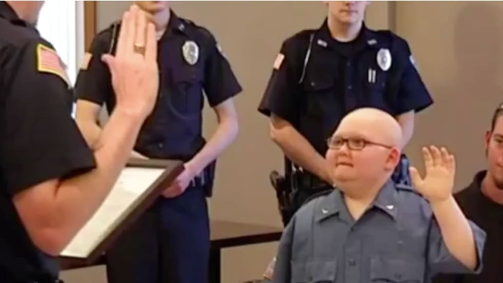Police officers with the Suffolk County (NY) Police Department welcomed three new members of the force on Wednesday—11-year-old Jesse Pallas, nine-year-old Zachary Cote, and 10-year-old Sean Hughes.