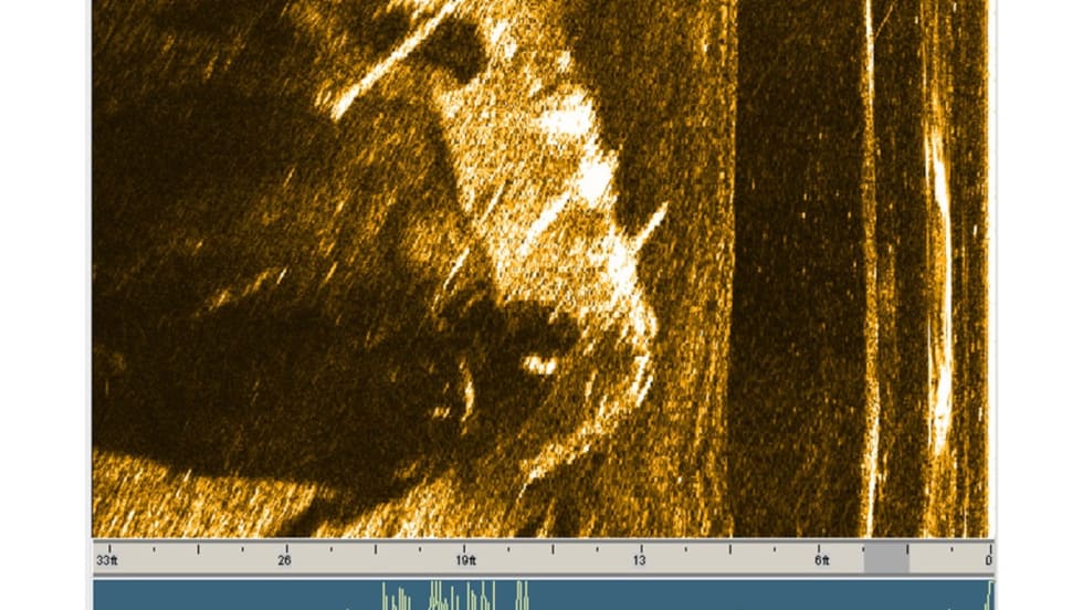 The sonar equipment paints a picture of the riverway bottom and allows for identification of objects without ever getting into the water.