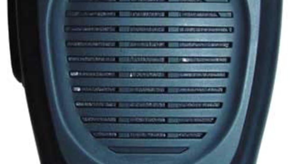 Klein Electronics' Valor Professional Speaker/Microphone for two-way radios is rubber overmolded and has contoured edges for enhanced grip and feel. It features both side and front Push-To-Talk (PTT) and two audio ports (top and bottom) with patent pending locking cams.