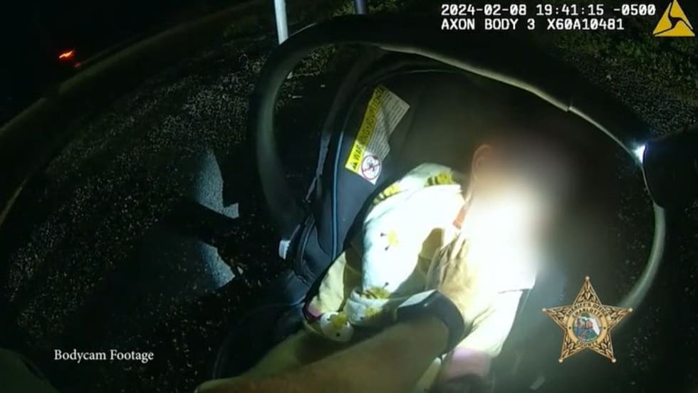 Sgt. Musgrove went back to the SUV but did not see the baby. Then he realized the baby was under the body of the motorcyclist who had been thrown through the window on impact. The baby was hurt and trapped in the child seat by the man’s body.
