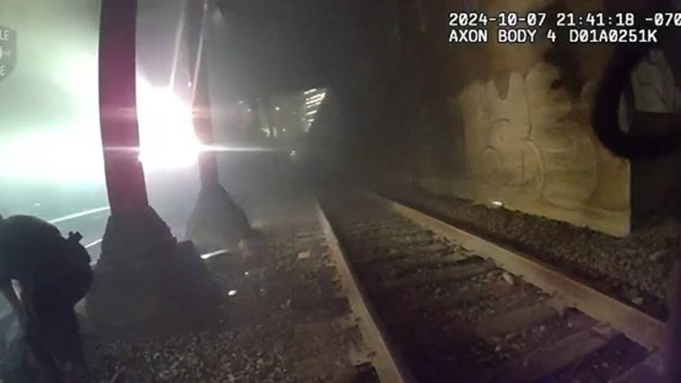 The incident began when officers responded to a 9:16 p.m. call about a man “experiencing a mental health crisis,” who was sitting on a ledge high above the tracks.