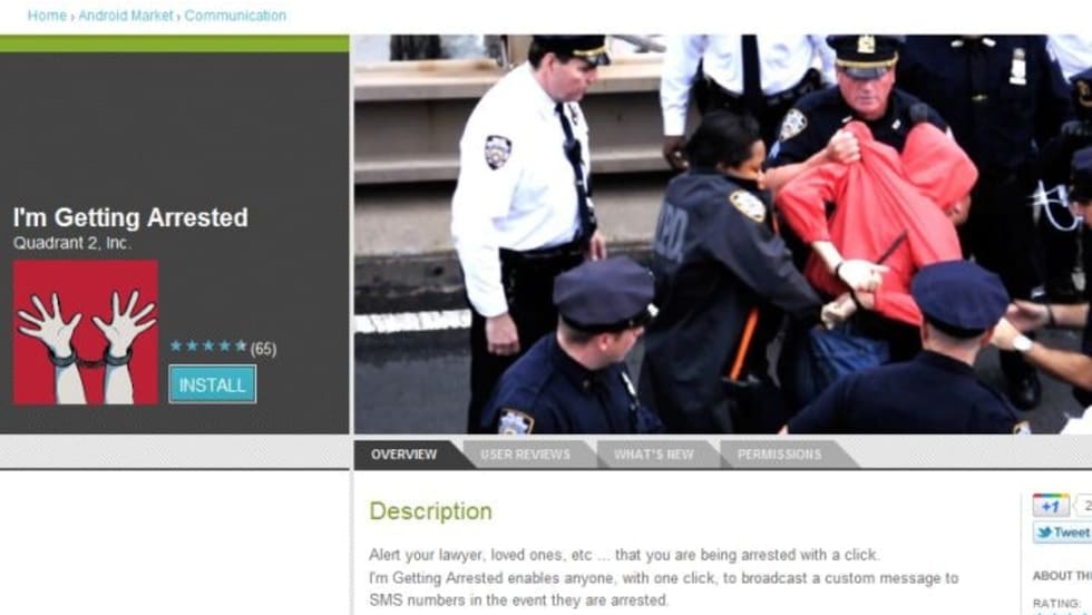 A free smartphone app called "I'm Getting Arrested" allows Wall Street protesters to send out a broadcast message to friends when they're getting arrested by an officer.