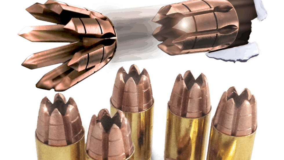 The trocar geometry of the round's fragments allows them to cut through tissue with less resistance, maximizing the wound path and resulting in seven separate wound channels.
