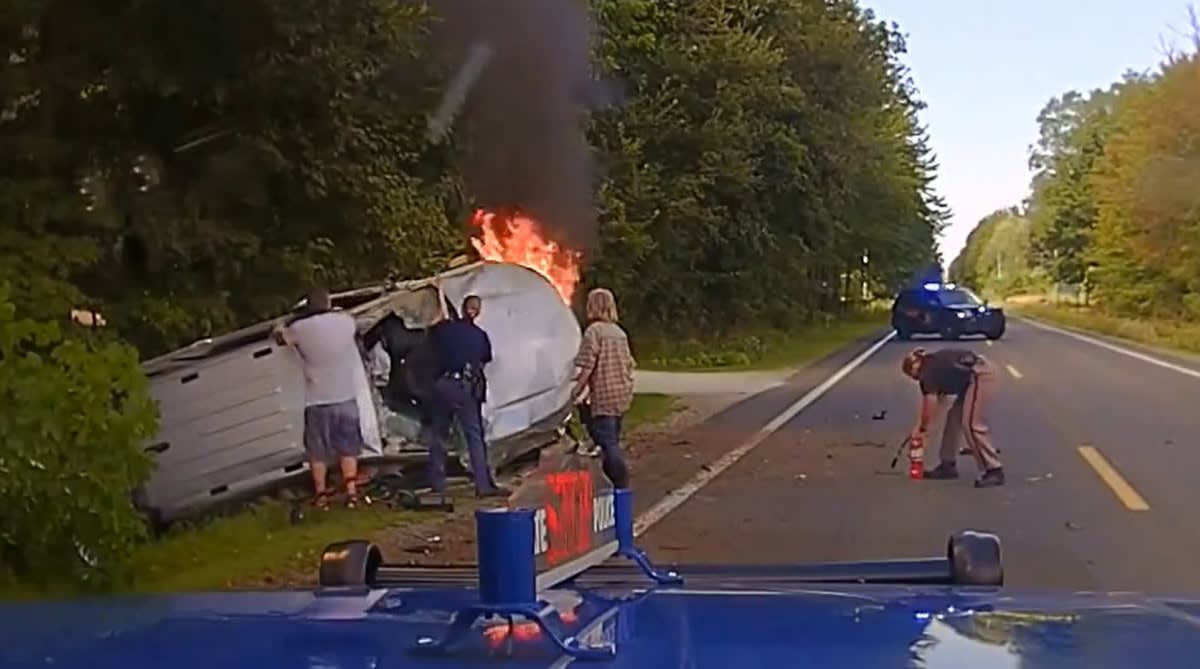 Read More →When the trooper arrived, flames were visible from the engine compartment, and she immediately ran to the overturned vehicle and began trying to break the windshield using her hands, arms, and feet to gain access to the driver who was trapped inside.