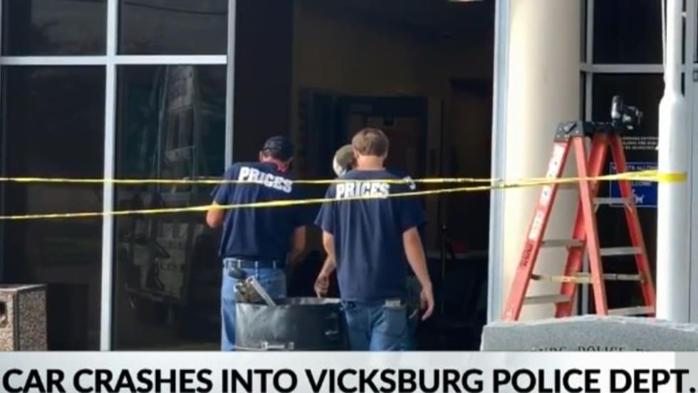 A vehicle crashed into the Vicksburg (MS) Police Department early Thursday morning.
