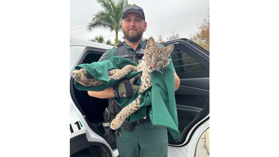 “Due to the bobcat’s injuries, the animal was docile and surrendered to the help the deputy was providing,” the Lee County Sheriff’s Office said.