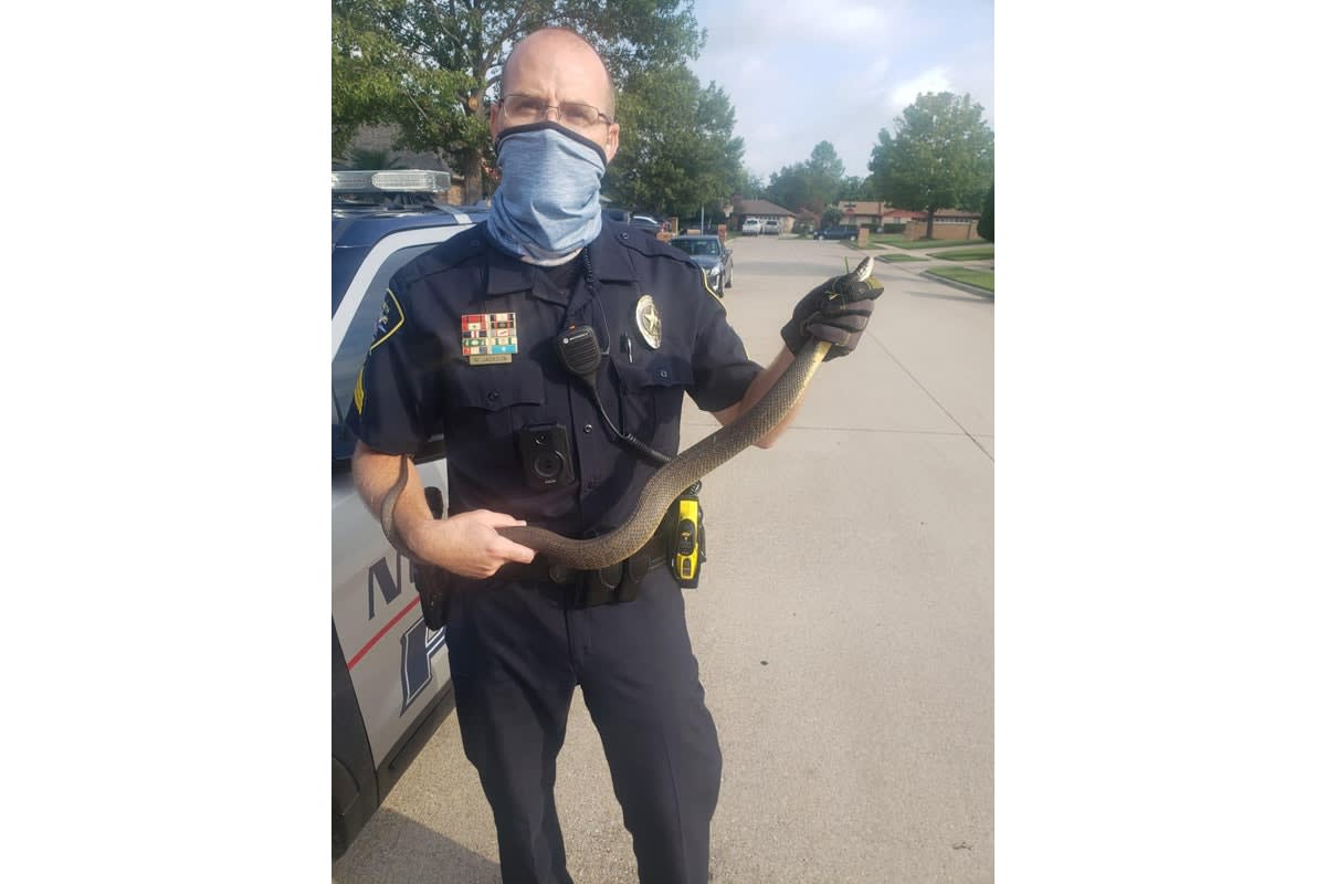 Read More →An officer with the North Richland Hills (TX) Police Department has been labeled a "snake charmer" by his agency in a social media post in which he is seen rescuing a four-foot-long water snake from the yard of a concerned resident who had called for assistance on Sunday afternoon.