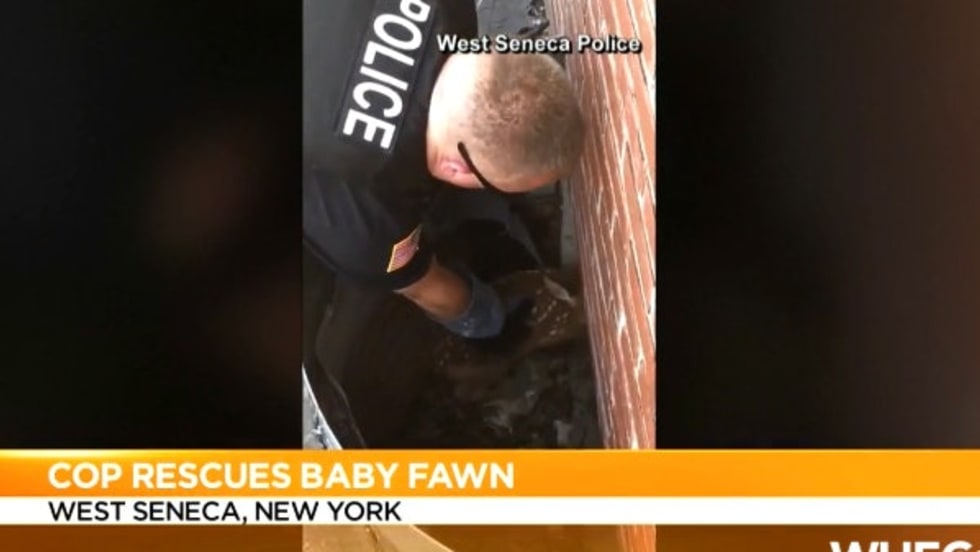 An Officer with the West Seneca (NY) Police Department was caught on video as he pulled a baby deer to safety after it had become trapped in a window well over Independence Day weekend.