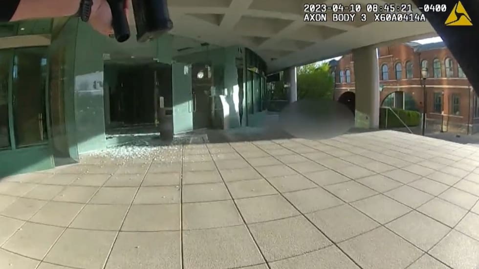 Video shows that the shooter had the tactical advantage of being above the officers in the lobby of the bank. Because of the type of glass on the bank lobby windows, the shooter also had the advantage of being able to see the officers while not being seen