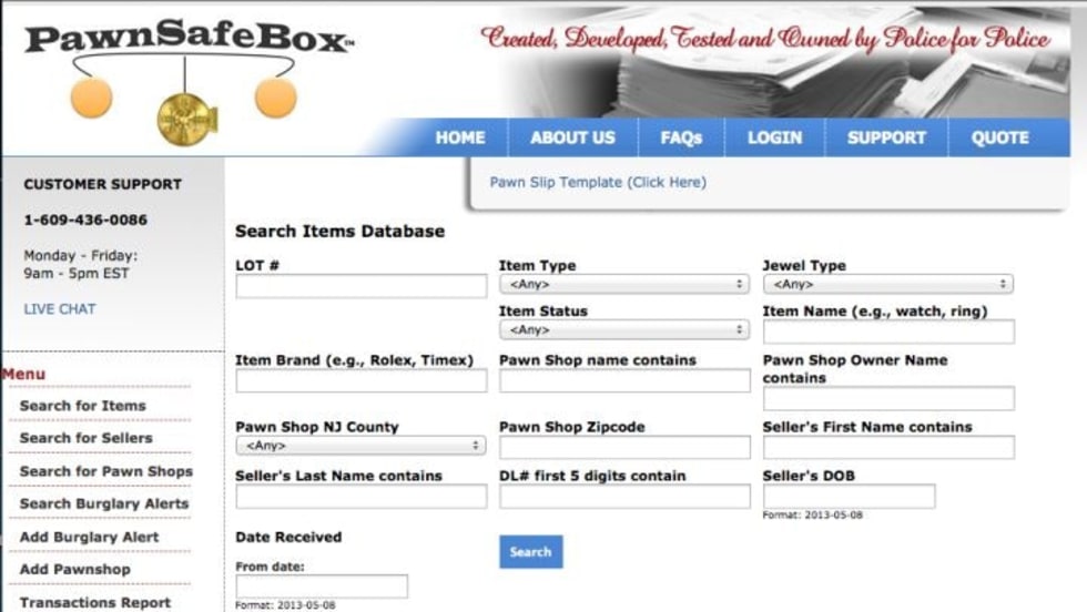 PawnSafeBox is an online database service created and developed by a policeman for police that records, captures, searches for, and locates stolen merchandise in near real time. A partnership with Stolen911.com improves victim involvement in finding stolen items.