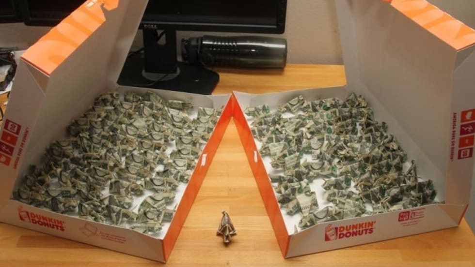 A man paid a $137 traffic ticket with 137 pig-shaped origami bills in Dunkin' Donut boxes that frustrated and amused the clerk and officers at the police station.