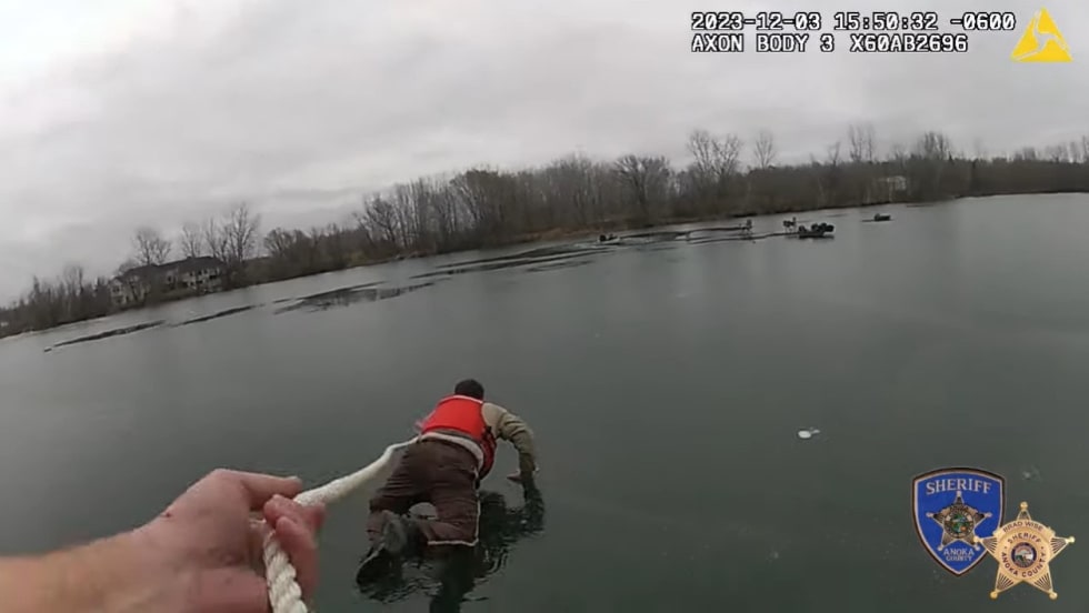 "These guys are hypothermia," Deputy Chris Fjeld said, after agreeing that he didn’t like what he was about to do and climbing out onto the ice.