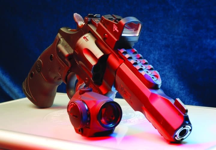 Read More →Smith & Wesson developed its eight-shot 327 TRR8, after a SWAT officer contacted the company to ask for a beefy revolver for the lead penetrator, who must carry a ballistic shield with one hand. The TRR8 gives operators eight rounds of .357 Mag in a package including a Scandium "N" frame, 5-inch barrel, and blackened cylinder. Rails and moon clips are included. After viewing these photos, read POLICE Magazine's full "Arsenal" review, "Smith & Wesson 327 TRR8" Revolver from the May 2008 issue. Photos by Alex Landeen.