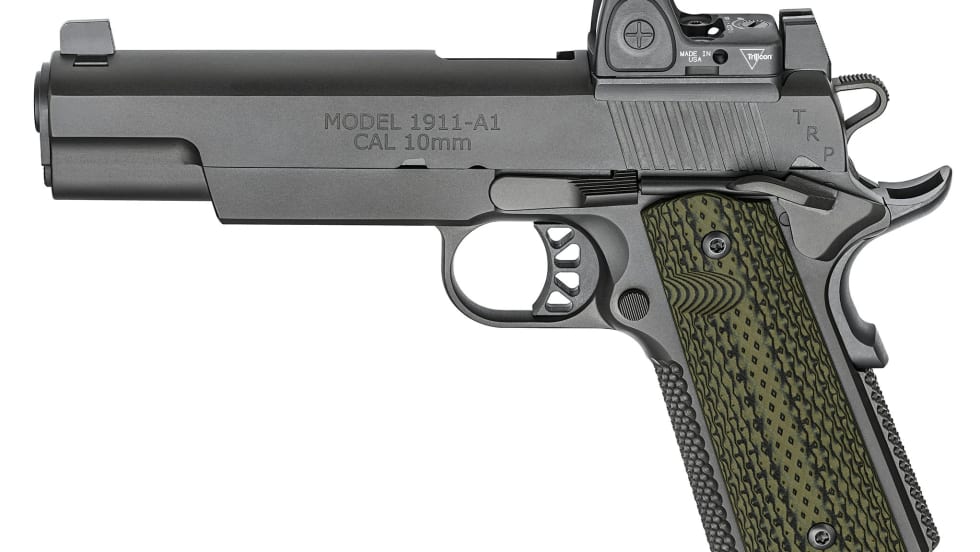 The new Springfield Armory TRP 10mm RMR comes in two models, both of which are now available with a Trijicon Ruggedized Miniature Reflex (RMR) sight specifically milled into the slide of what Springfield Armory calls its most elite production 1911.