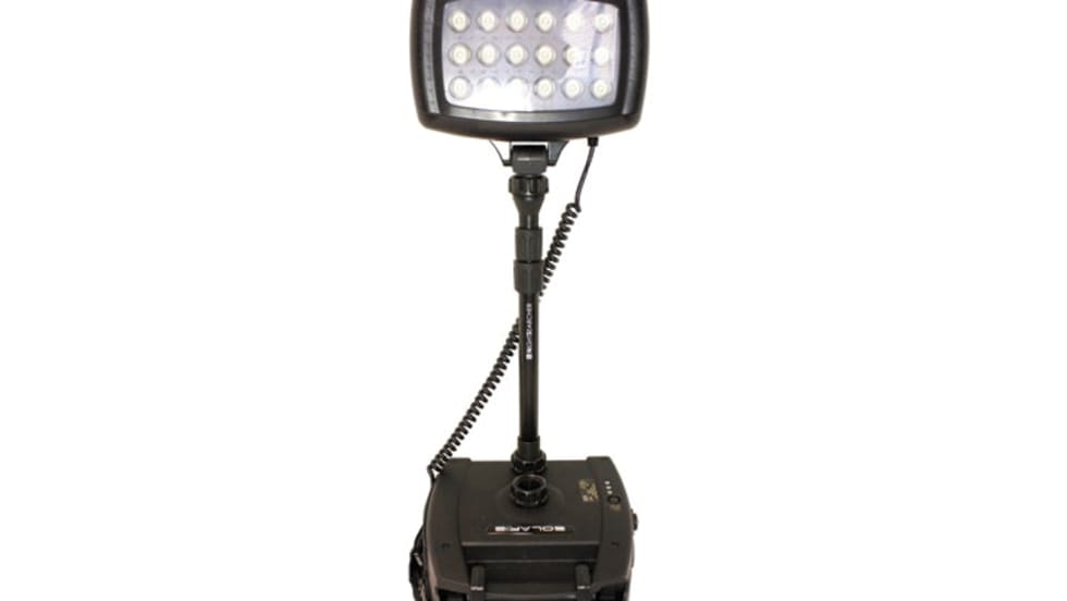 Tele-Lite's compact rechargeable TL-LITE-LED light can be set up in less than 30 seconds for rapid deployment in emergency situations. The combination of 18 high-powered Cree LEDs and intelligent optics creates 3,500 lumens of floodlight.
