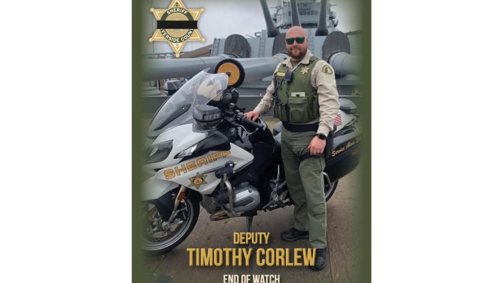 At about 5:30 a.m., Riverside County Sheriff's Deputy Timothy Corlew, assigned to Jurupa Valley Sheriff’s Station, was involved in an on-duty traffic accident and died.