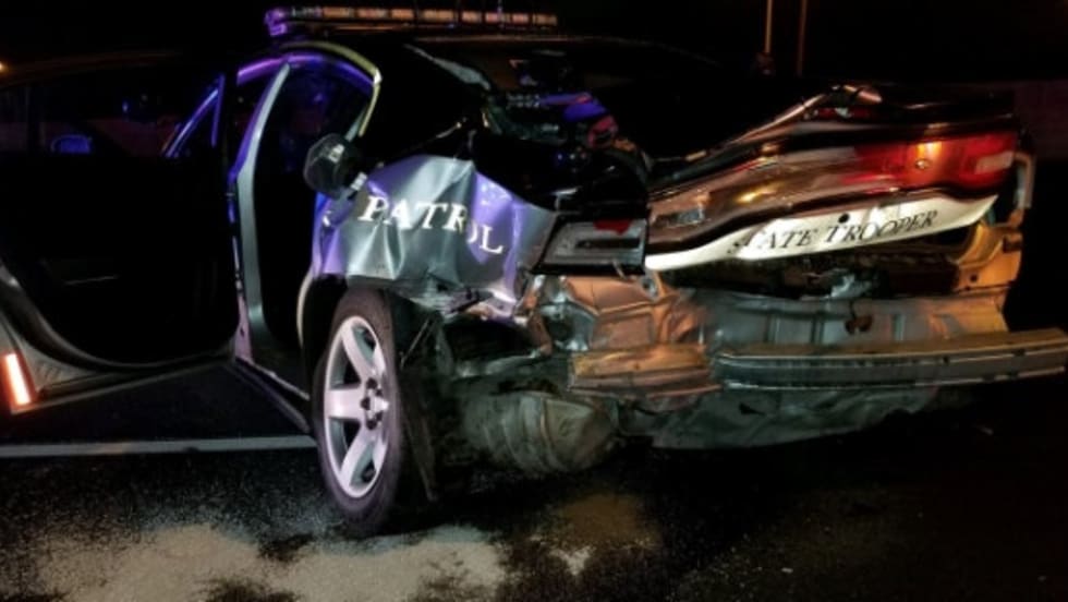 A trooper with the Colorado State Police was injured early Monday morning when a suspected DUI driver crashed into his parked patrol vehicle.