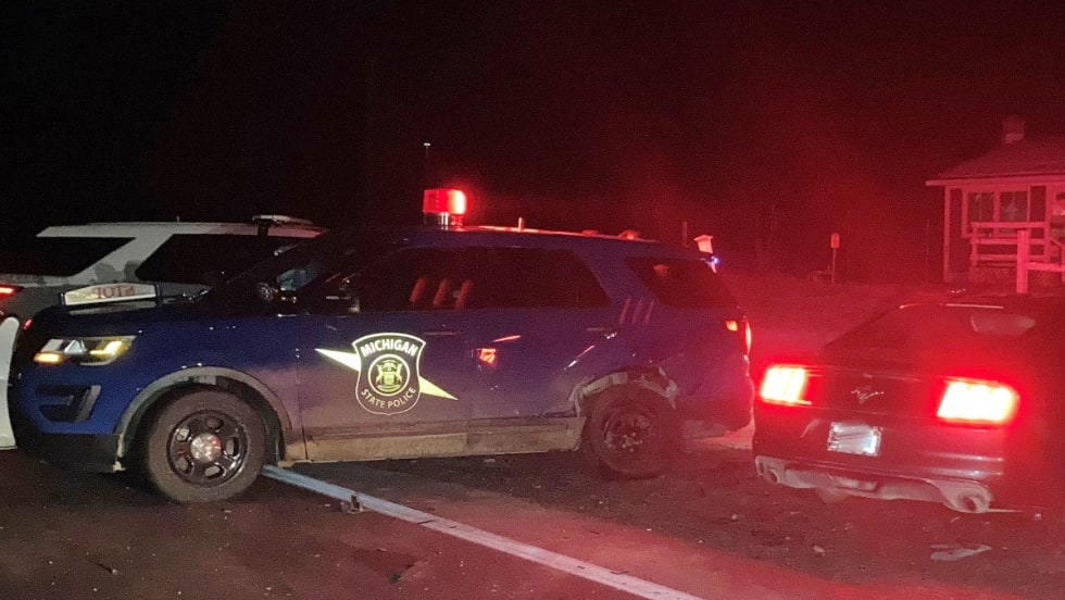 The pinned trooper was transported to the hospital with non-life-threatening leg injuries and has been treated and released. The second trooper suffered back pain but remained on scene.