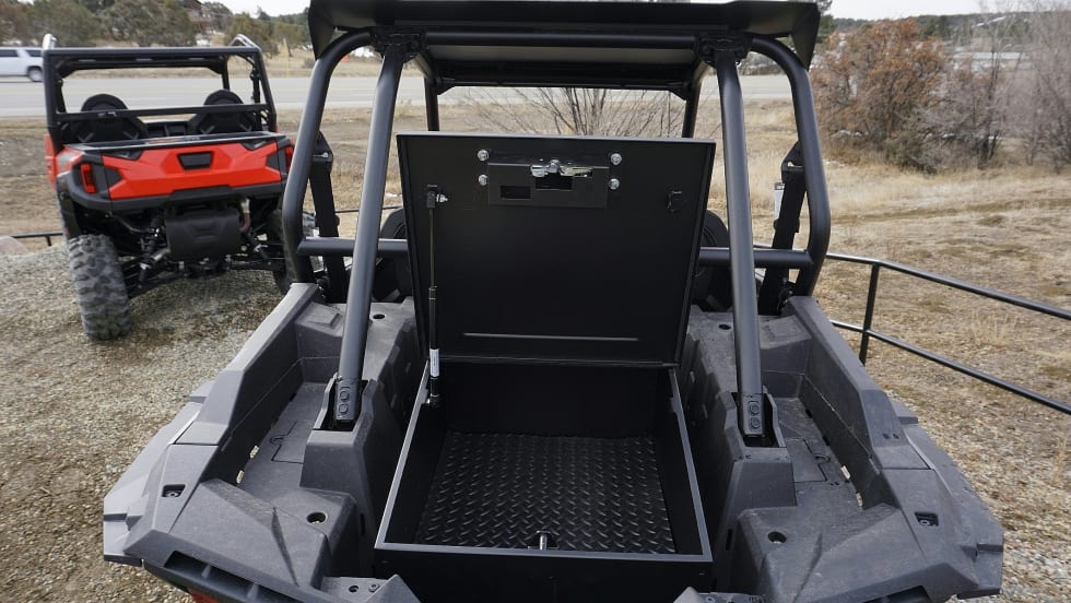 The UTV Lockbox from Tuffy Security Products secures gear and valuables in 4,800 cubic inches of 16-gauge steel.
