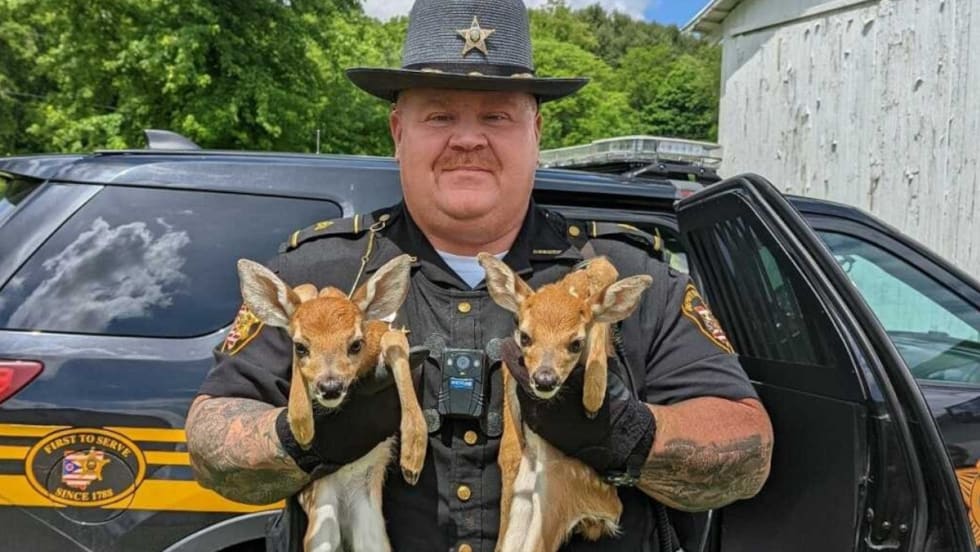 In Ohio, a Belmont County Sheriff’s Office deputy and a state trooper rescued two fawns after the mother deer was struck and killed on Interstate 70.