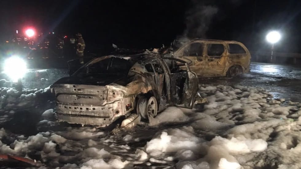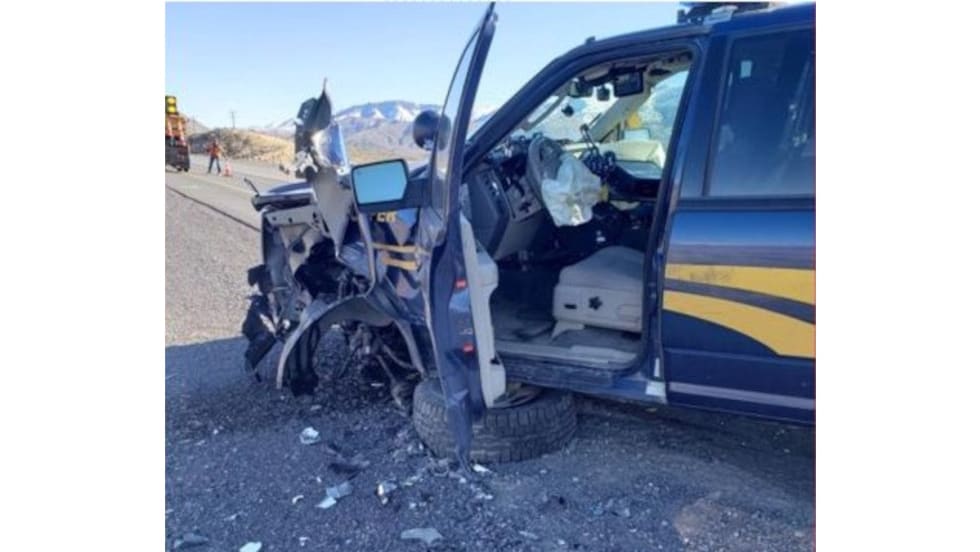 The trooper was struck head-on by another vehicle traveling south in the northbound lanes. Both vehicles caught fire.