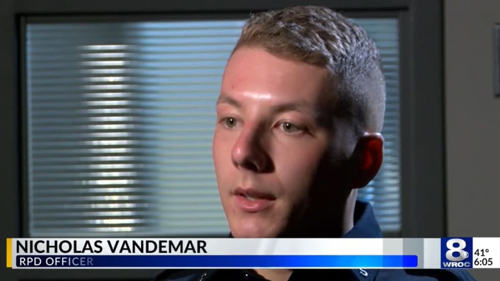 Officer Nicholas Vandemar entered the library, saw blood on the floor, and then a man crumpled up against the wall.