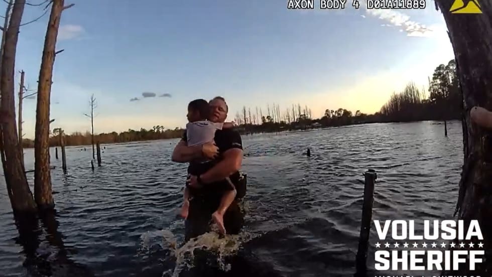 Video published by the Hillsborough County Sheriff’s Office shows Sheriff Chad Chronister and a deputy finding the boy floating in the floodwaters from Hurricane Milton.
