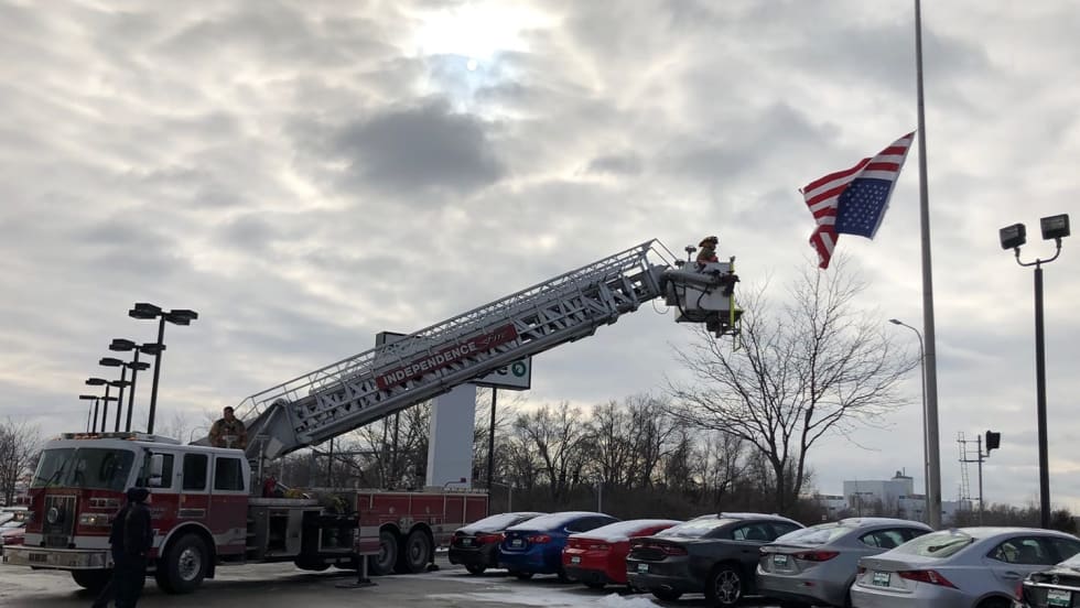 An officer with the Independence (MO) Police Department was on patrol when he noticed that the top part of an American flag had come apart from the flag pole it was flying from, causing the stars and stripes to fly upside down.