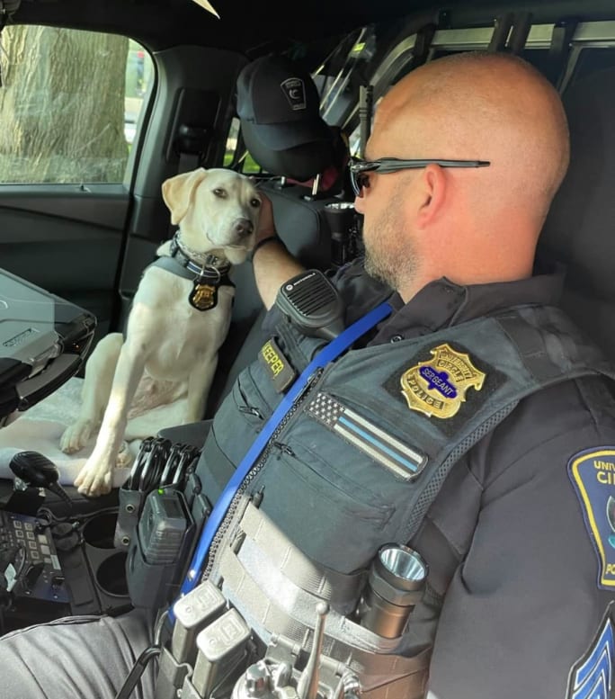 Seyler trained Wetzel’s first community policing dog. After the successful Richmond Heights partnership, Wetzel approached Seyler to train a community policing dog for University Circle. Seyler agreed, selected a labrador retriever named Grace and trained her for two months over the summer to meet the department's goal of introducing her to the community in 2023.
