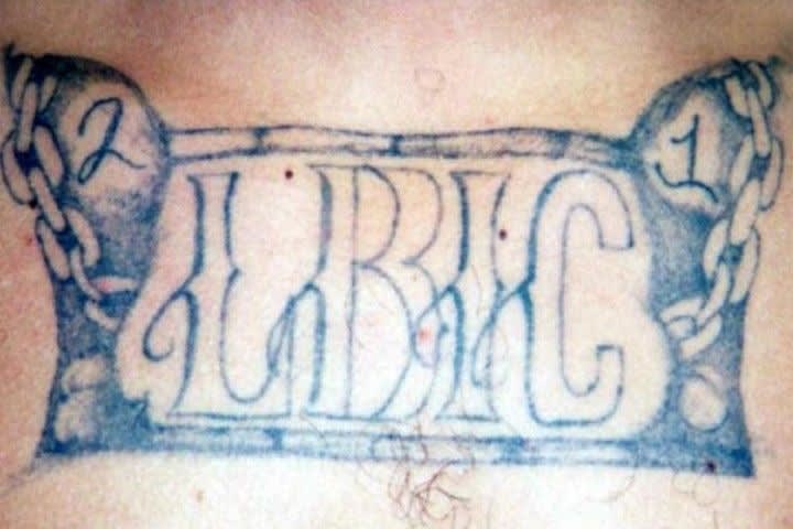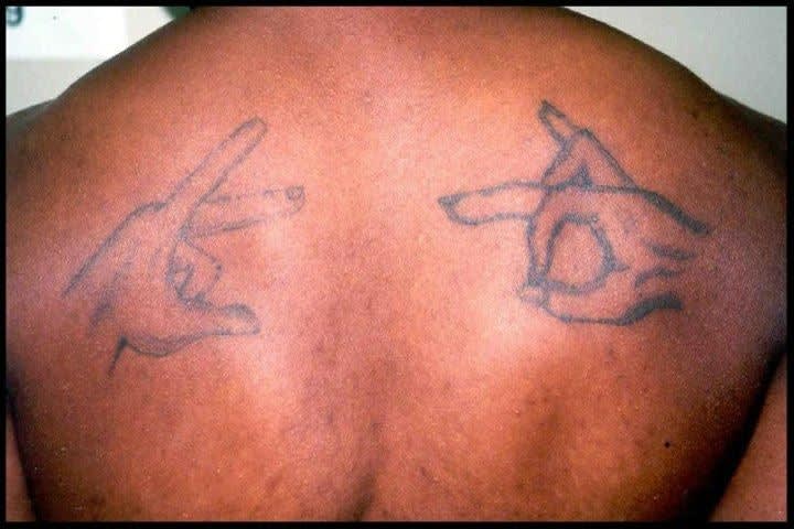 A Bloods gang member tattoo.