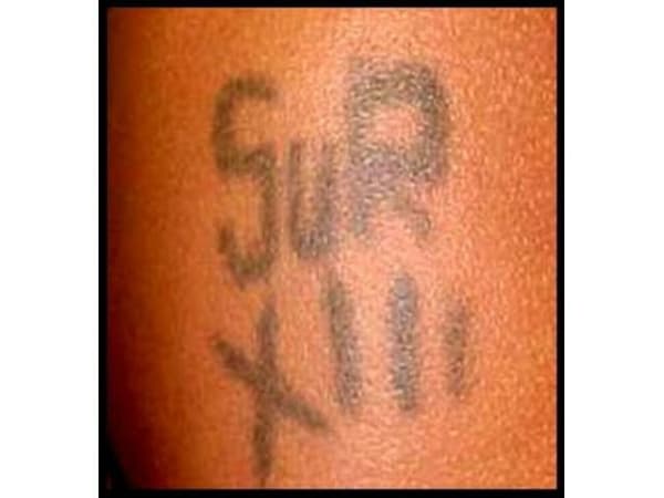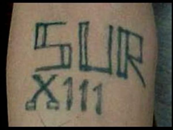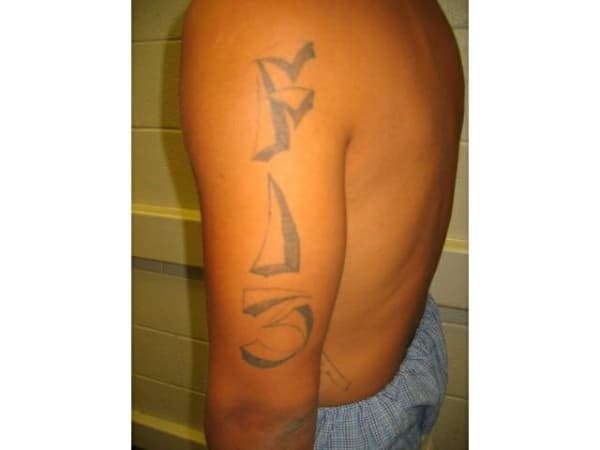 This "MS" tattoo identifies its owner as a member in Mara Salvatrucha, a large Hispanic gang formed in the Salvadoran community in Los Angeles. Some gang members were deported to El Salvador years ago and now the gang has spread throughout that country and Honduras. MS-13 (it is affiliated with the Mexican Mafia) spread throughout the United States as Central American immigrants came to America to find work. The gang is now very strong on the East Coast.