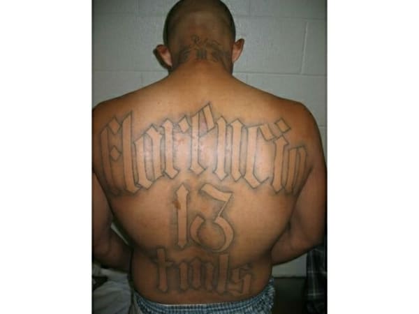 Florencia 13 is a large Hispanic gang in Los Angeles County that borrows its name from a major street (Florence, pronounced Florencia in Spanish). The gang uses "13" in its name to show its strong allegiance to the Mexican Mafia.