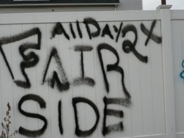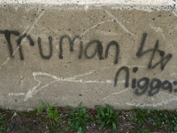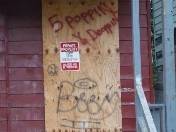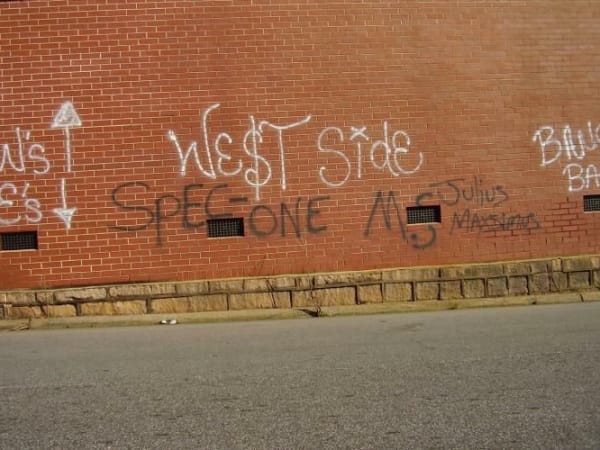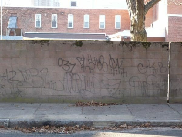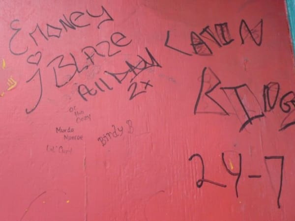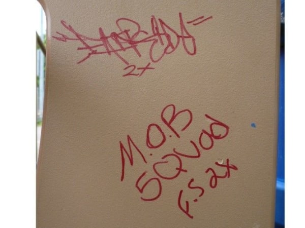 Graffiti from a set calling itself the Truman Street Boys is seen here.