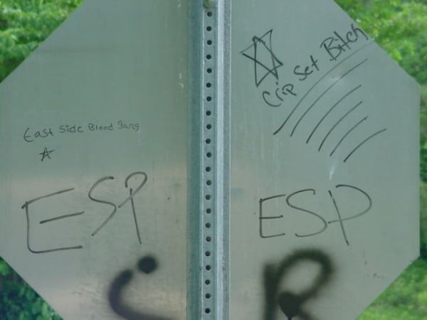 This Blood set tagged the back of a stop sign in Salisbury, North Carolina.