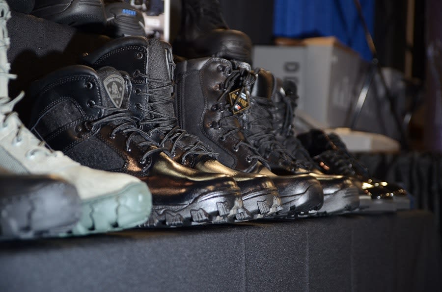 Rocky Boots displays their footwear in the exposition hall.