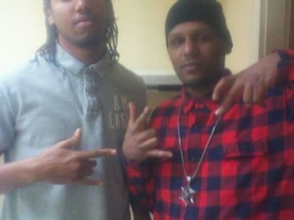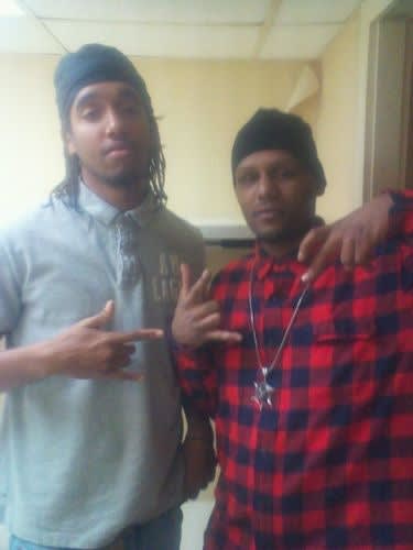 The suspected Blood with the gray shirt is showing "westside" or "brim." The other one is showing "westside" with his right hand and "crip killer" with his left hand.