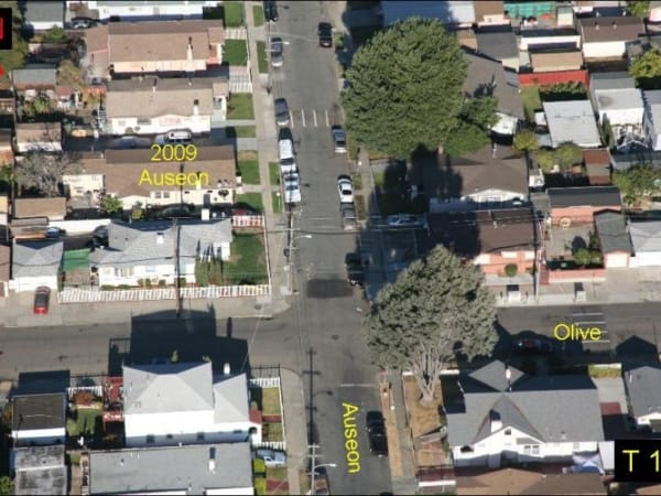On Aug. 27, 2010, Officer Young pursued suspect Andrew Barrientos into East Oakland to a house at 2009 Auseon Avenue. Photo: Alameda County District Attorney