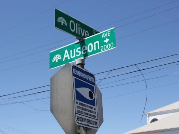 This view shows Auseon and Olive Street. Officer Young pursued Barrientos west on Olive toward the left of this photo.
