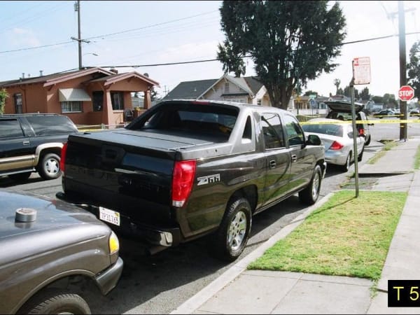 Officer Young first spotted Barrientos from this view on Auseon near this Chevy Avalanche truck.