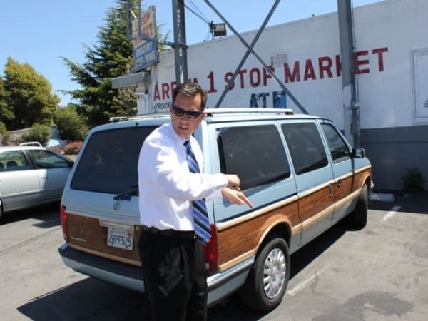 Deputy District Attorney John Brouhard shows where Barrientos carjacked a green Mazda 626 sedan at a convenience market.