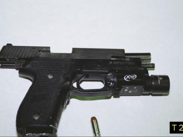 Officer Young carried a SIG 220 pistol chanbered in .45 ACP in a drop-leg holster on the day of the shooting.