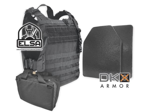 Phalanx Defense Systems LLC's ELSA (Emergency Life Saving Armor) is an innovative and discreet hard armor rapid deployment system. In one swift motion, what appears to be an ordinary soft-sided briefcase transforms into a well outfitted plate carrier. It's intended for use when and where active shooter activity is anticipated or probable for undercover, school resource officers, on motorcycles, escort duty, range and safety operations. The ELSA is designed to use DKX MAX3 Level III armor.