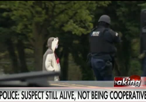 The suspect had refused to cooperate with officers, police spokesman T.J. Smith said. When he walked out of the building, he was wearing a white panda suit, a surgical mask and sunglasses before being shot by three officers, reports Fox News .