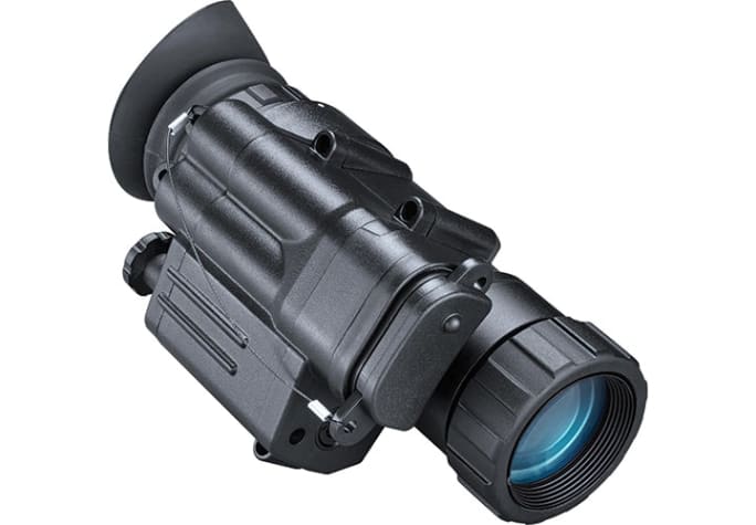 The Digital Sentry is Bushnell AR Optic's first night vision monocular. The 2x monocular is multiple carry—helmet and weapon mounts are included—or it can be used as a handheld device. The night vision is powered by an 850 nM LED IR illuminator with an intensity control for clear images in any level of darkness and a viewing area reaching out to 220 yards. It serves as a 2x magnifier during the day, and can be used with a red dot as a night aiming solution.