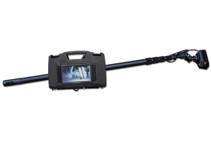 TacView is a pole mounted, IR/color camera that can help you search areas in full room light or total darkness. The camera head size is two inches in diameter with built-in auto on/off IR LEDs. It is strong enough to break and rake a window. The 3.10 model expands to from three feet to 10 feet, which allows viewing into a second-story window or onto the roof of a one-story building from ground level. In addition, its camera head will detach and may be clamped onto the top of a shield or hidden and linked to a 100-foot cable (optional) that will let you discreetly watch your objective behind cover 100 feet away.