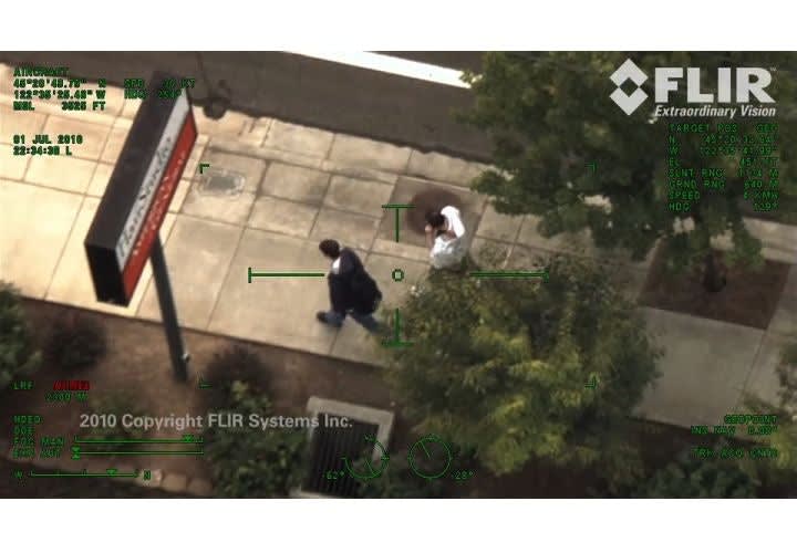 A high-end thermal imaging system such as FLIR's Star SAFIRE HD offers law enforcement officers a powerful search tool for detecting heat-emitting objects across large search areas. The system offers a high-definition infrared camera mounted to an airborne unit that produces both EO (electro-optic) color and IR (infrared) white-hot images. Photos courtesy of FLIR Systems.