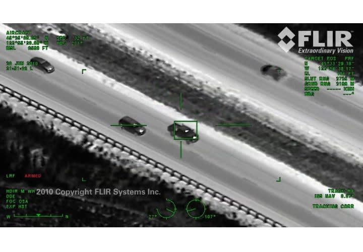 Thermal imaging makes us of the difference in temperature between an object and its surroundings. This image was taken from a Star SAFIRE system mounted to a fixed-wing PC-12 in Hillsboro, Ore.