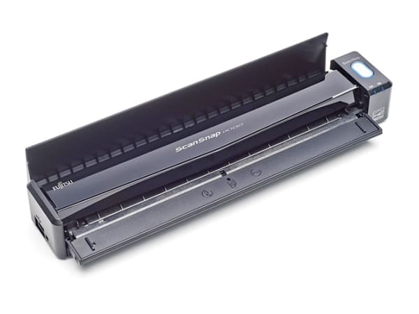 The Fujitsu ScanSnap iX100 is a light and fast wireless scanner equipped with a built-in lithium rechargeable battery and Wi-Fi connectivity for anywhere, anytime scanning to a computer, smartphone or tablet. The iX100 weighs 14.1 ounces and scans a color document at 5.2 seconds per page with a simple push of a button. The scanner transmits searchable PDF or JPEG files such as receipts, business documents, bills, business cards, and plastic ID cards directly to a PC, Mac, Android, and iOS compatible devices, as well as popular cloud services. www.fujitsu.com/us